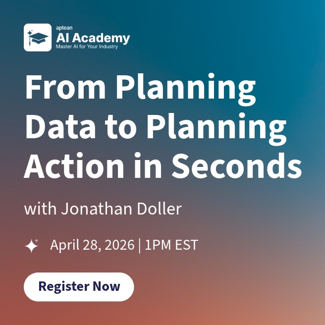 AI is transforming how work gets done across every industry. Aptean is here to help you turn that change into real business value. Aptean AI Academy offers free, expert-led education designed specifically for Aptean customers and those still exploring. Learn how to apply AI practically using Aptean Intelligence and AppCentral, and move from experimentation to measurable results. Join live or on demand and choose the topics that fit your level, your goals, and your schedule.